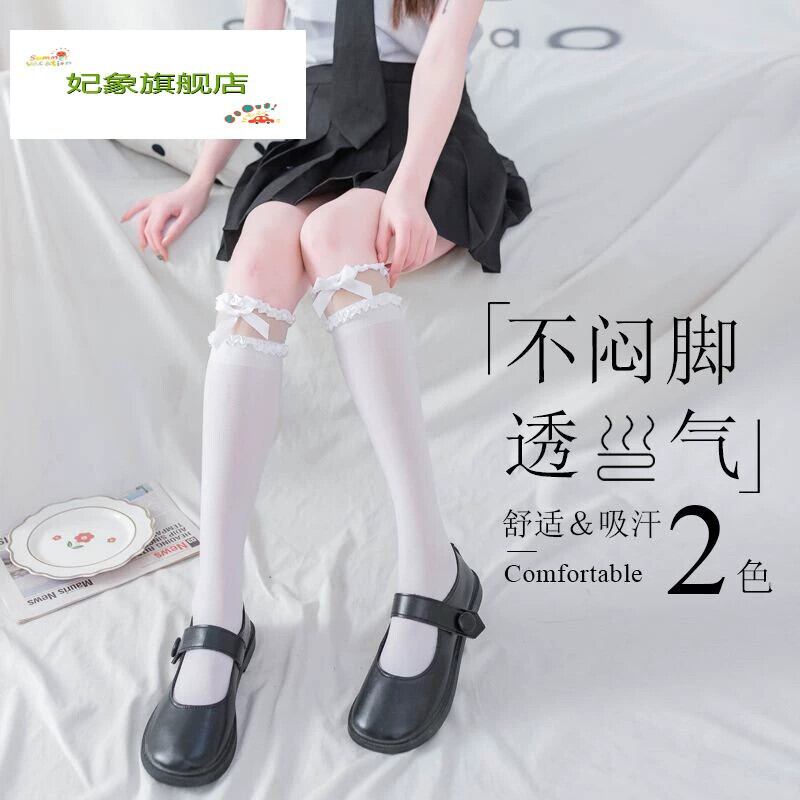 ロリータ乳白色ステッチ弓靴下ミッドふくらはぎ靴下女性 JK 甘いふくらはぎ靴下薄い黒レース靴下 ホワイト ブラック リボン 大人ガーリー スウィート キュート カジュアル タイツ ストッキング ソックス huang86141217955 | CFTsexy-fashion