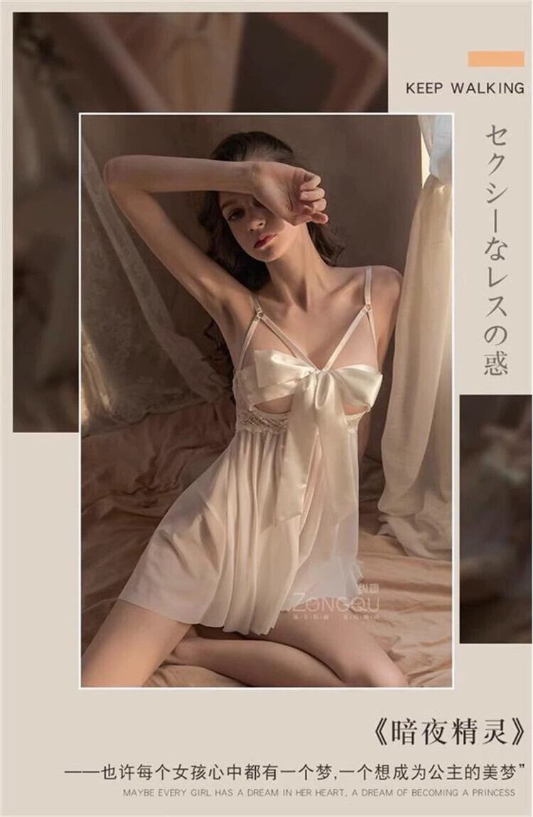 薄いセクシーなサスペンダーナイトガウン夏 2023 新しい純粋な欲望甘いレースのリボンドレス胸パッド女性 大人ガーリー スウィート キュート カジュアル サマー 夏物 ピュア huang71079289182 | CFTsexy-fashion