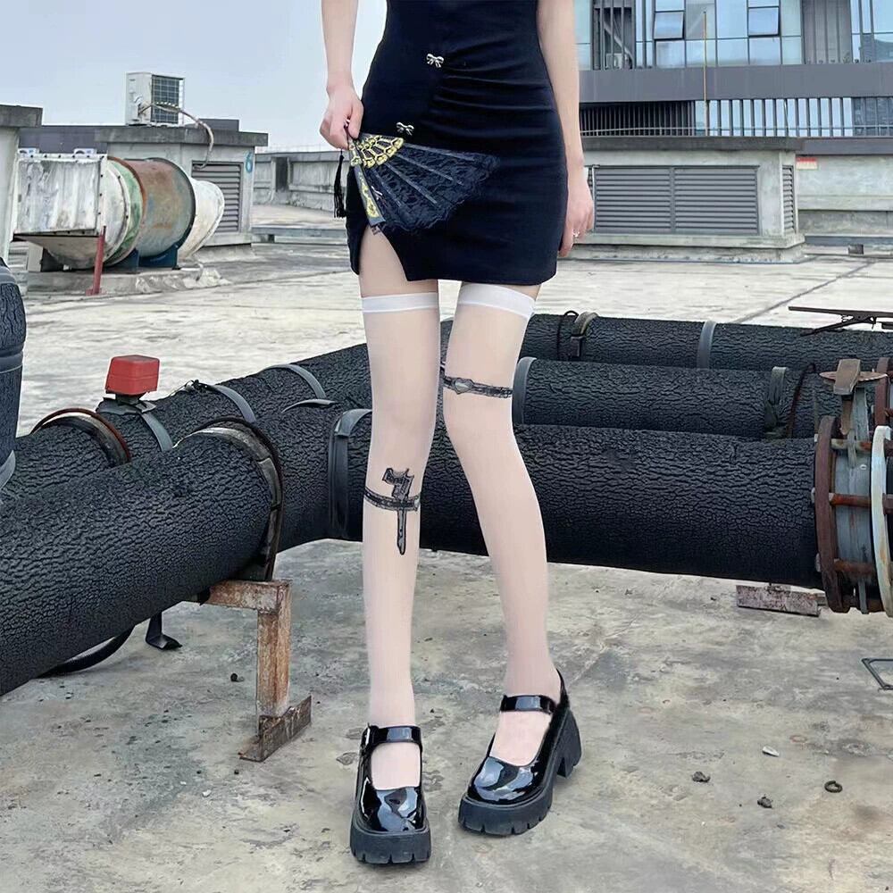 黒の ese jk タトゥー プリント春と夏の薄いハイ ストッキング セクシーなピストル スプライシング ニーハイ ストッキング イン ブラック スプリング 春物 サマー 夏物 タイツ ソックス huang94761253140 | CFTsexy-fashion