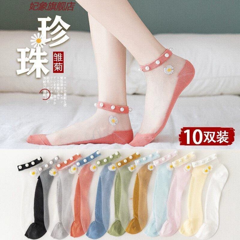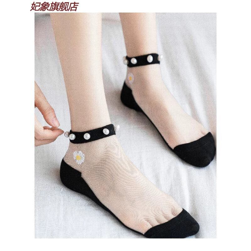 パールソックスレディース、スタイルソックス、ストッキングレディース、夏の薄いクリスタルソックス、浅いボートソックス、透明なレディースソックス、小さなデイジー サマー 夏物 タイツ 真珠 huang50035729645 | CFTsexy-fashion