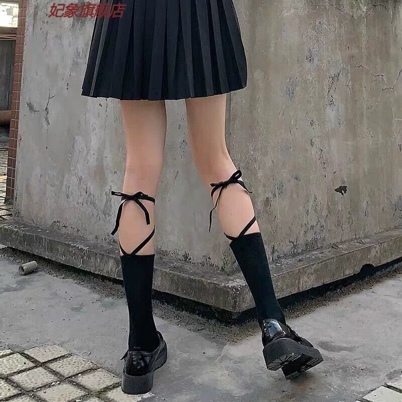 シークロスカーフストラップソックスブラックミッドカーフレディース春夏ダッドシューズ付きレースアップコットンロングソックスJKソックス 靴 スプリング 春物 サマー 夏物 タイツ ストッキング huang40021319516 | CFTsexy-fashion