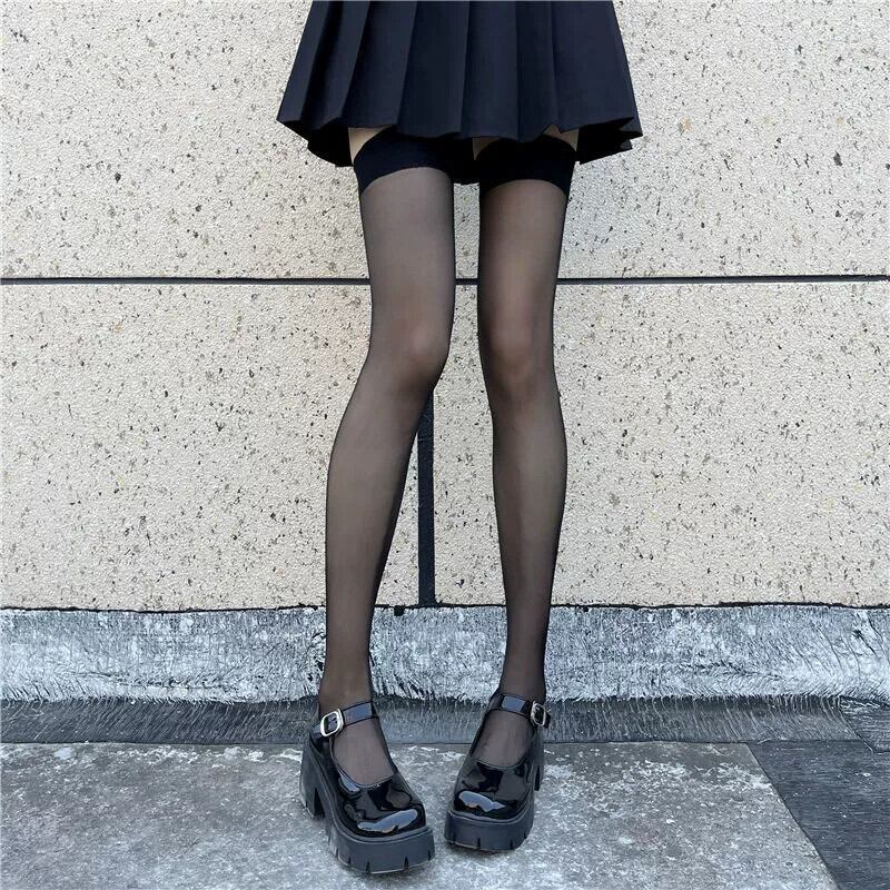 微透明ブラックシルクJKカレッジスタイルセクシーサイソックスオーバーニーソックス春夏薄手芯紡ぎシルクハイソックス スプリング 春物 サマー 夏物 タイツ ストッキング huang37000169550 | CFTsexy-fashion