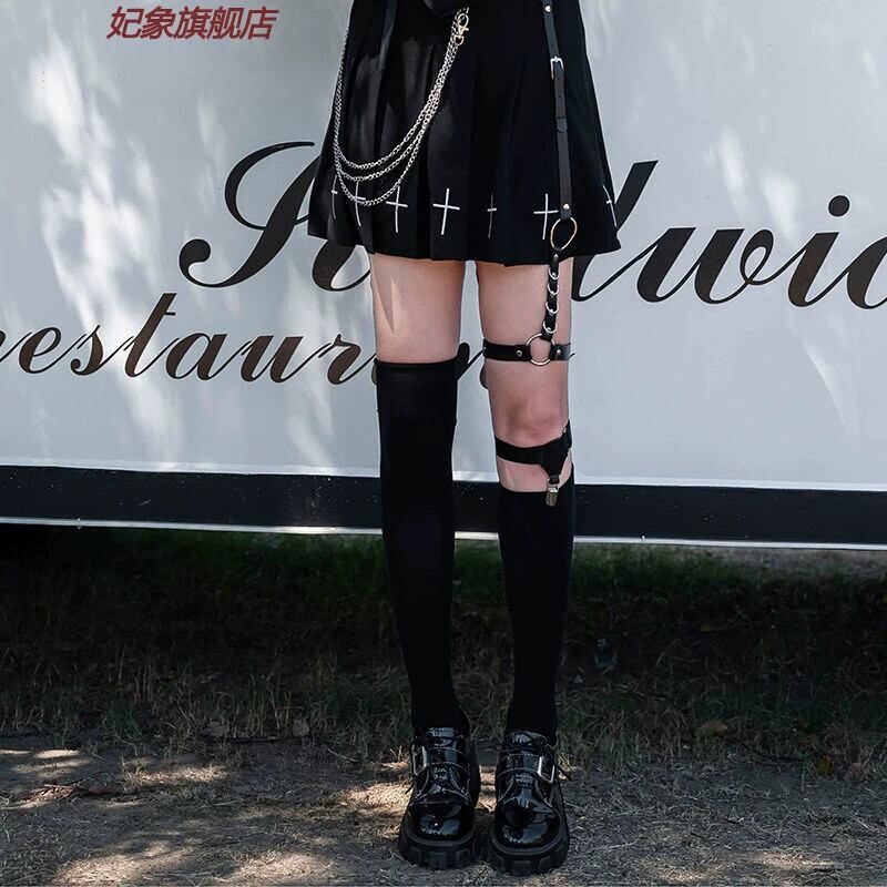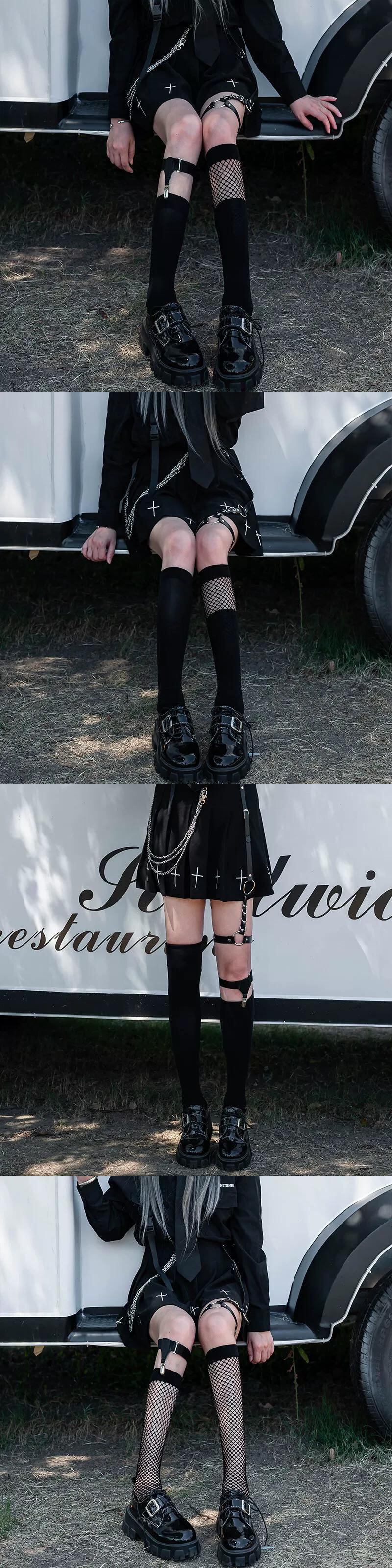 jk カーフソックス夏薄いロリータソックス女性のミッドカーフ黒ストッキングパンクスタイルアクセサリー脚リングクリップ網タイツハーフ ブラック サマー 夏物 指輪 huang13886721946 | CFTsexy-fashion