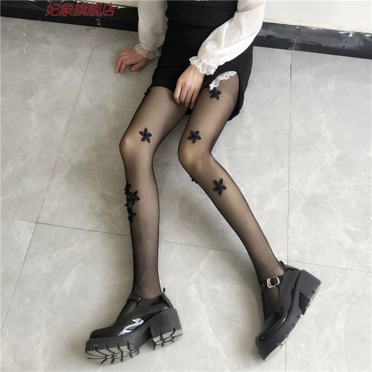 真珠の花ストッキング女性夏、薄手、オプションカット、セクシーパンスト、黒ストッキング、JK白ストッキング ホワイト ブラック サマー 夏物 タイツ ソックス パール フラワーデザイン huang81626731681 | CFTsexy-fashion