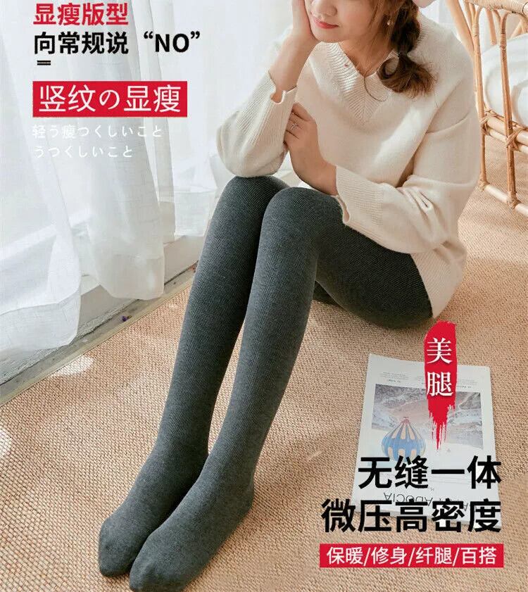秋と冬の綿の縦縞レギンスの女性は、中厚の黒とグレーのストッキングを少しタイトでスリムにします。 ブラック コットン オータム 秋物 ウィンター 冬物 タイツ ソックス ストライプ huang31242876206 | CFTsexy-fashion