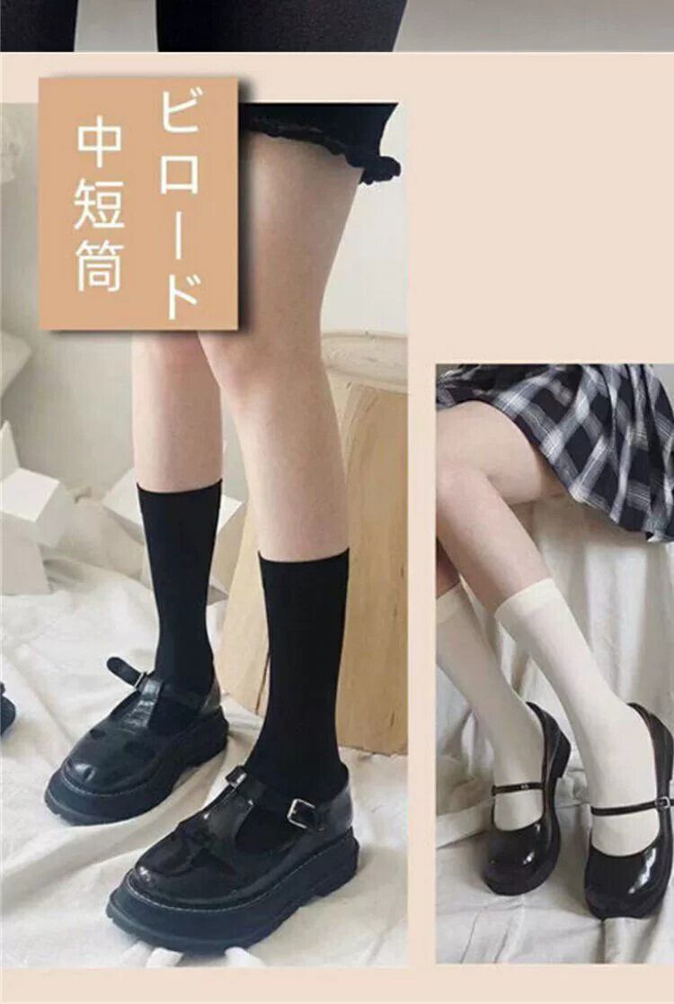 ふくらはぎソックス、白黒JKソックス、レディースミッドふくらはぎソックス、春夏美脚、ニーハイ、薄手黒ストッキング ロング ホワイト ブラック スプリング 春物 サマー 夏物 タイツ huang79209079768 | CFTsexy-fashion