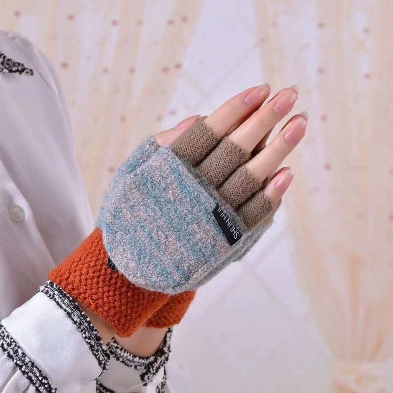 冬用の暖かいベルベットと防寒ウールのニットで覆われたハーフフィンガーグローブ、タッチスクリーンを書いている学生、露出した指でサイクリング、女性 レッド ウィンター 冬物 huang94417841923