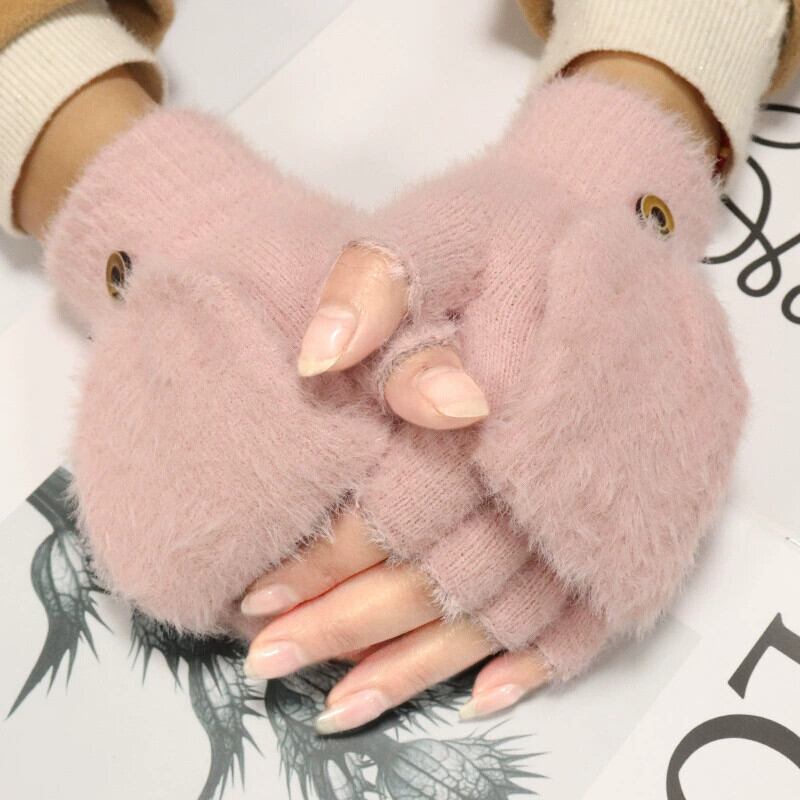 女性の冬暖かいぬいぐるみ手袋学生指なしフリップ手袋屋外手袋肥厚防寒インターネット有名人 ウィンター 冬物 huang86356062718