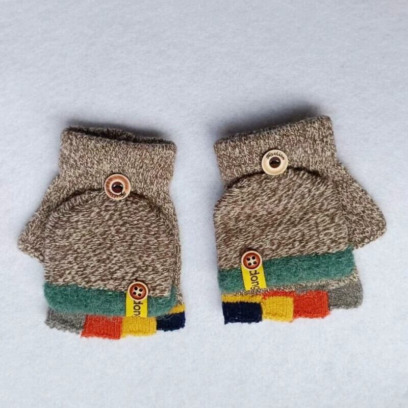 秋冬子供用手袋ストライプ配色冬暖かい手袋かわいいハーフフィンガー手袋ジャガードベビー手袋 大人ガーリー スウィート キュート カジュアル オータム 秋物 ウィンター 冬物 huang66759013158 | CFTsexy-fashion
