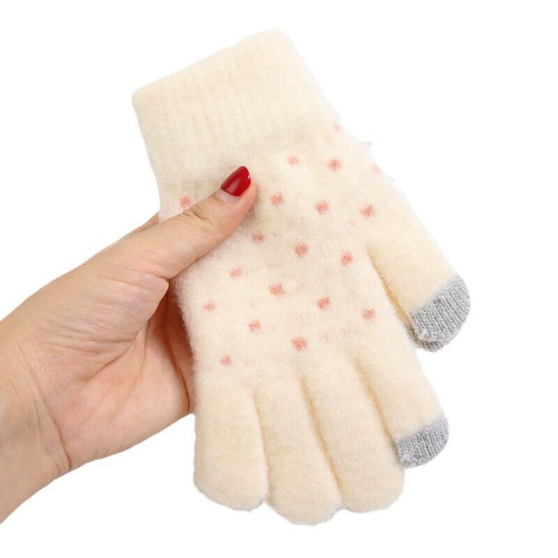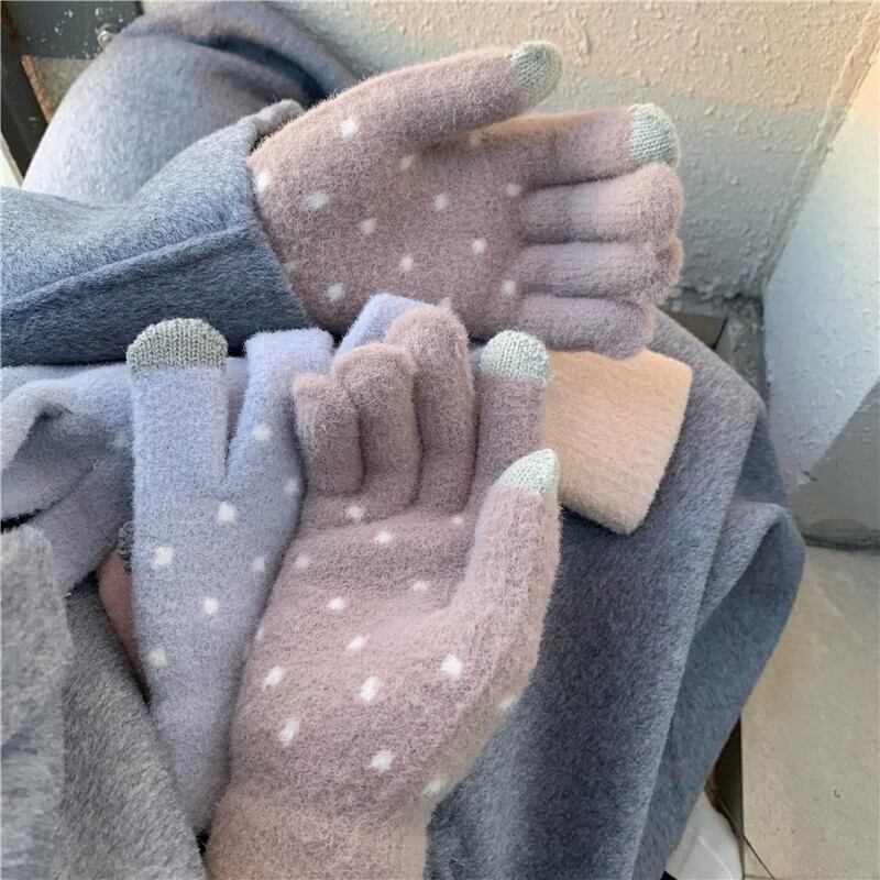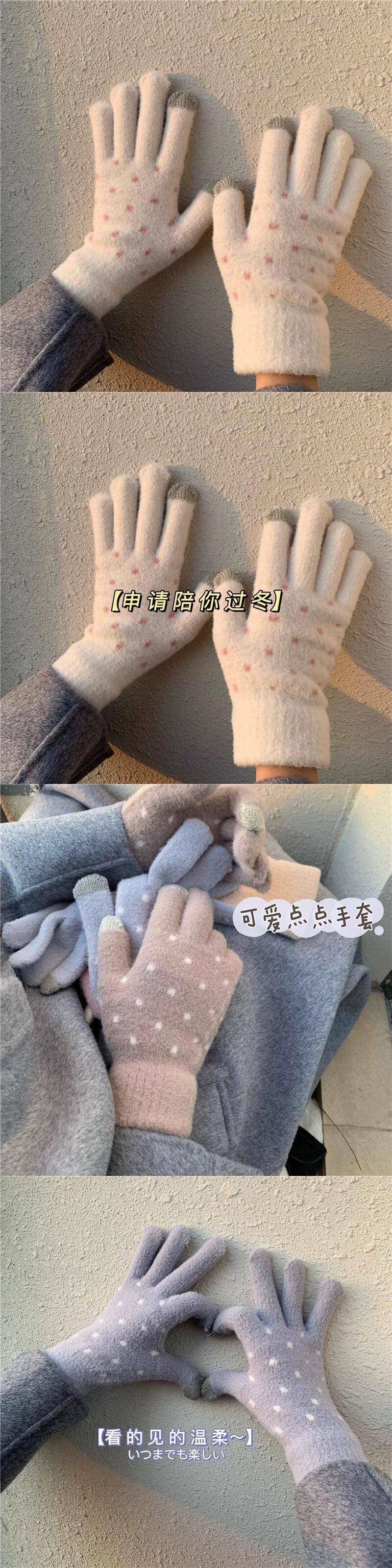 かわいいウールの手袋ニットタッチスクリーンバージョンドット暖かいプラスベルベットサイクリング手袋 ese スタイル秋と冬の 5 本指女性 大人ガーリー スウィート キュート カジュアル オータム 秋物 ウィンター 冬物 huang38591891524 | CFTsexy-fashion