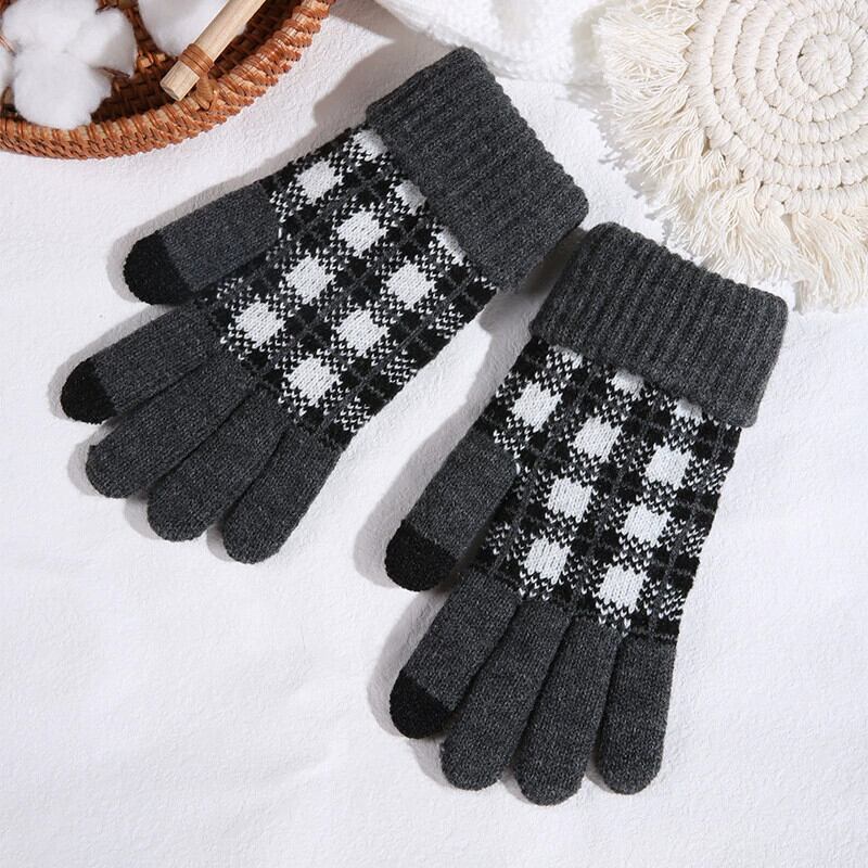 タッチスクリーンスタイルの冬用チェック柄手袋レディース、ベルベットとスプリットフィンガーサイクリングで厚みのある、暖かくて防寒性のあるカップルの新しい手袋 ウィンター 冬物 huang3895042475 | CFTsexy-fashion