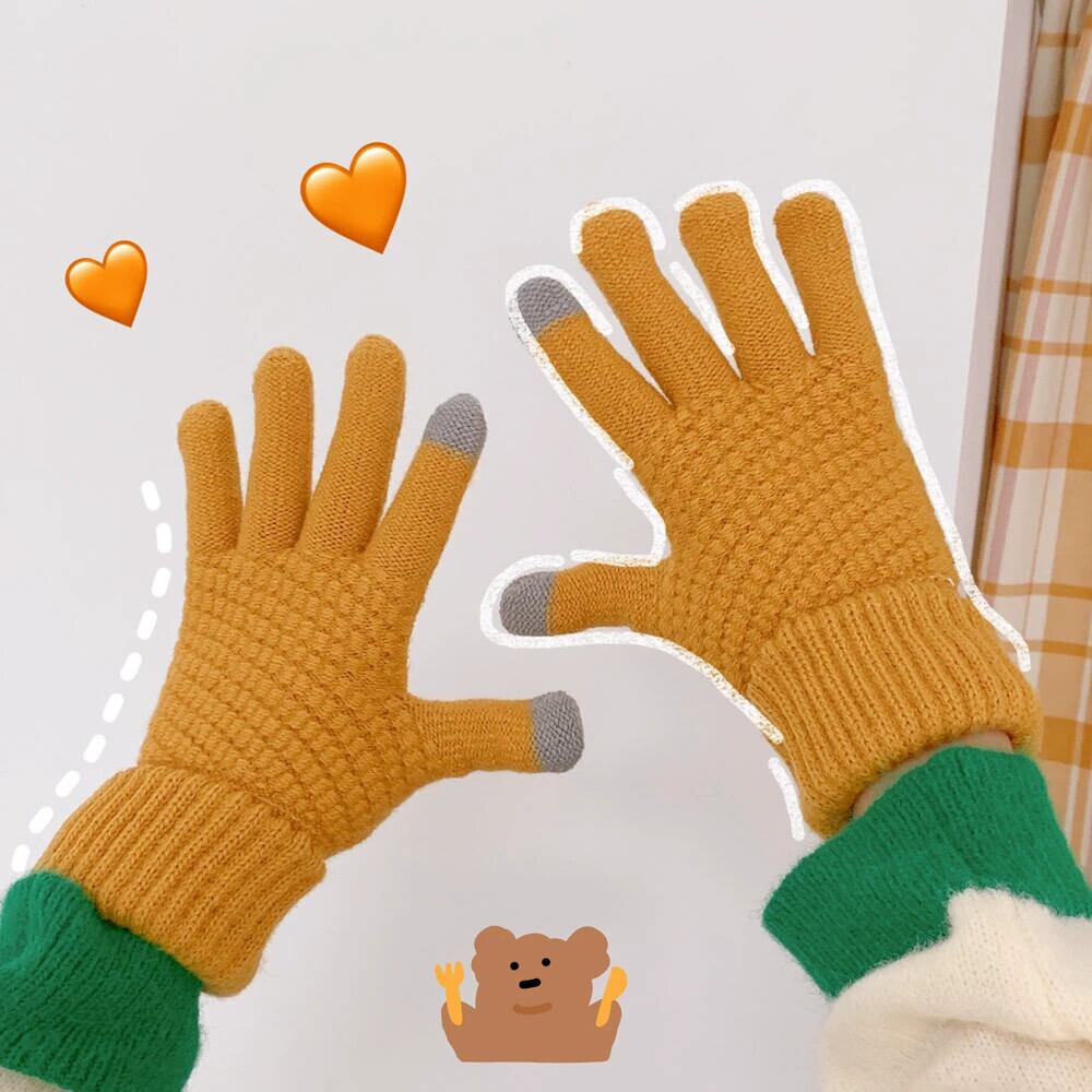 秋と冬のニット手袋女性、暖かいプラスベルベットと厚みのある学生ウール、トレンディなタッチスクリーン、かわいいサイクリング手袋、冬の女性 大人ガーリー スウィート キュート カジュアル オータム 秋物 ウィンター 冬物 huang16001332720 | CFTsexy-fashion